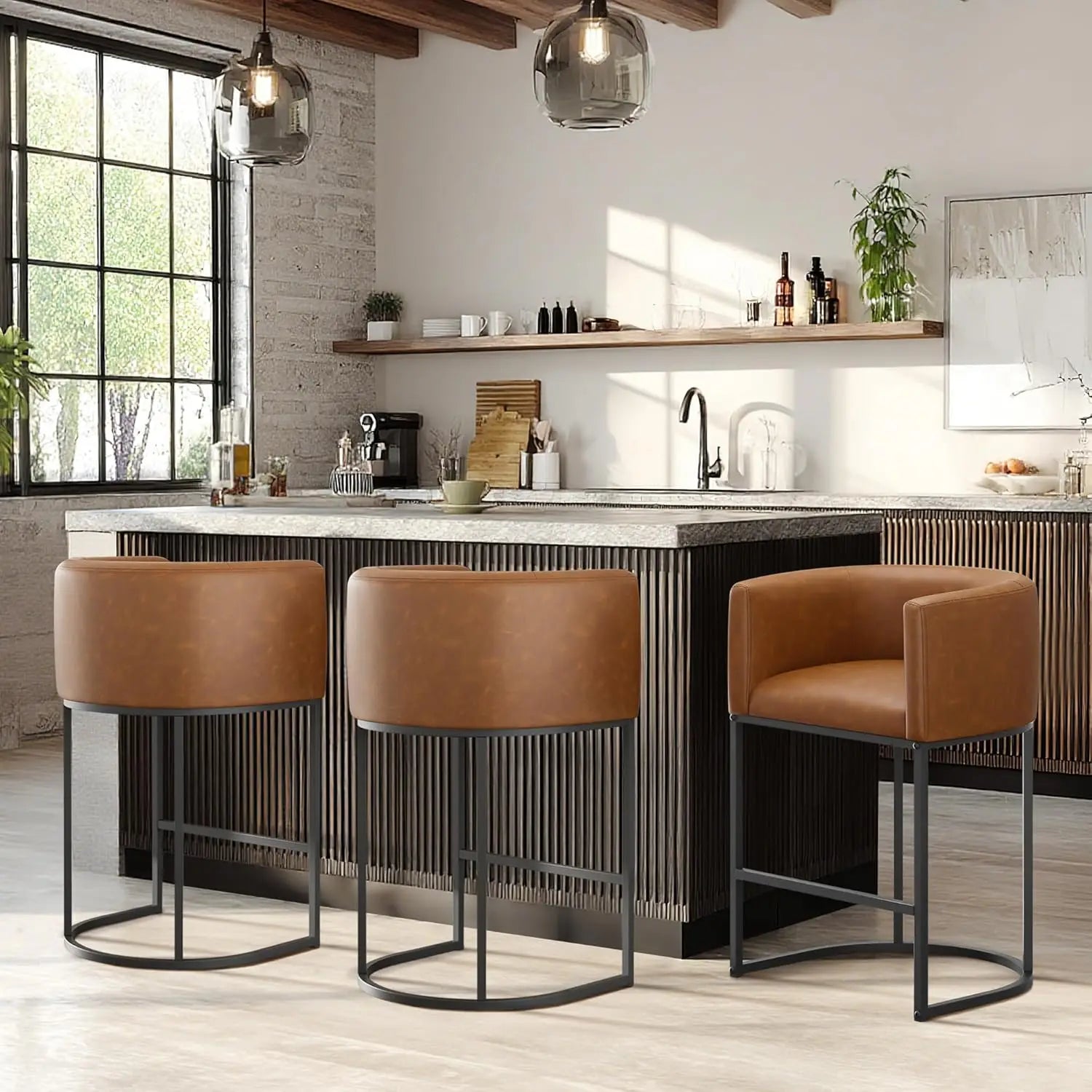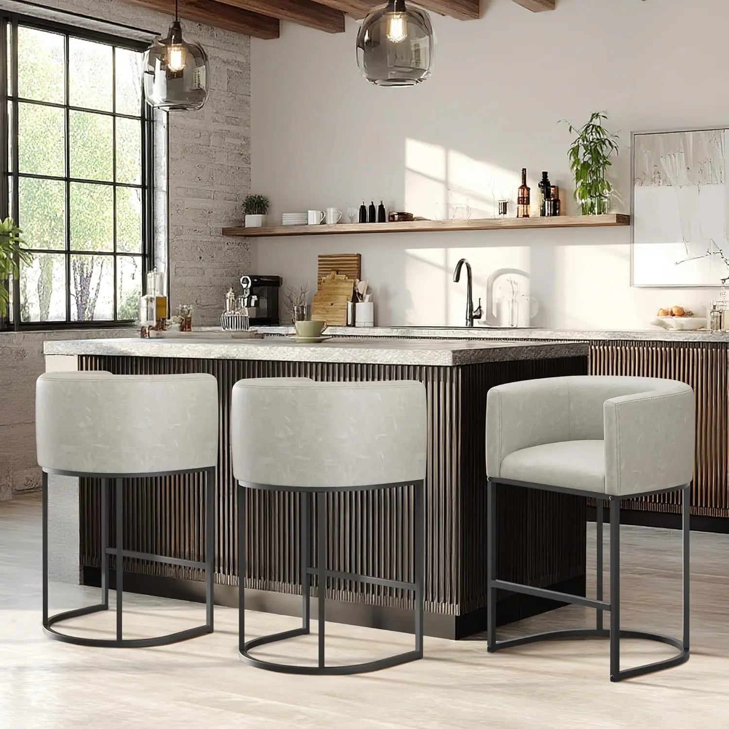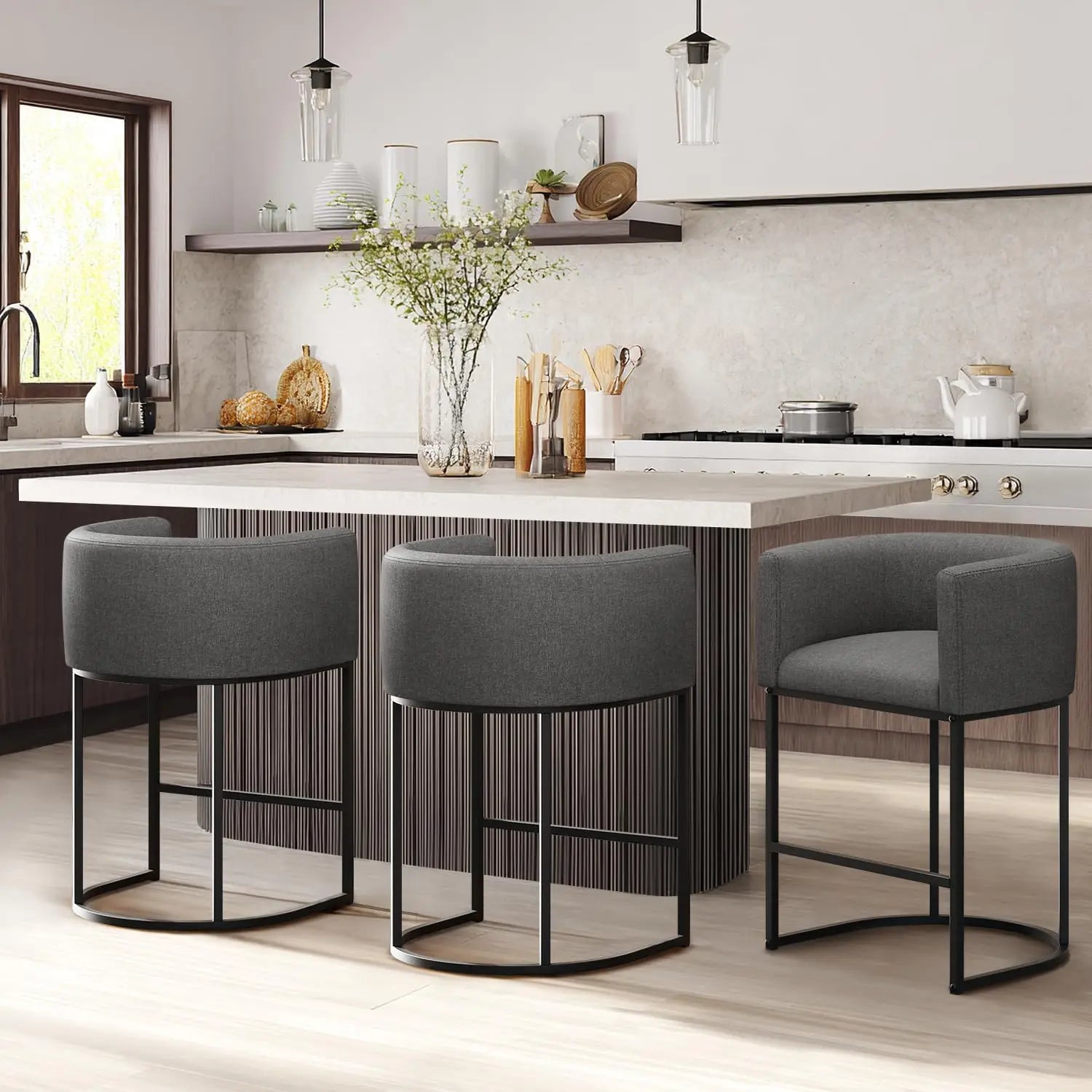Elevate your kitchen counter with a Bar Stools Set of 3 Linen Upholstered that fuses modern minimalism with everyday comfort.