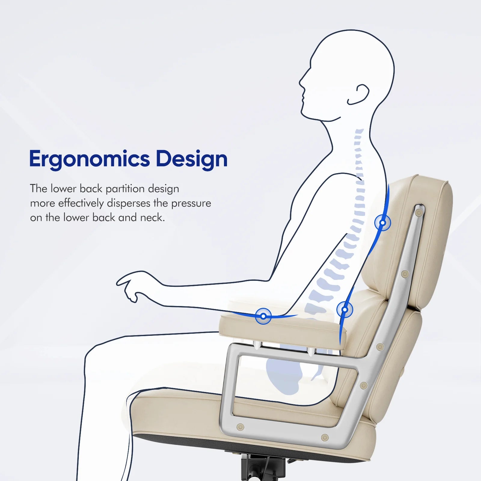 You get all-day ergonomic support with the Furgle Genuine Leather Office Chair With Arms, blending premium materials to keep you comfortable for work, study, or gaming.