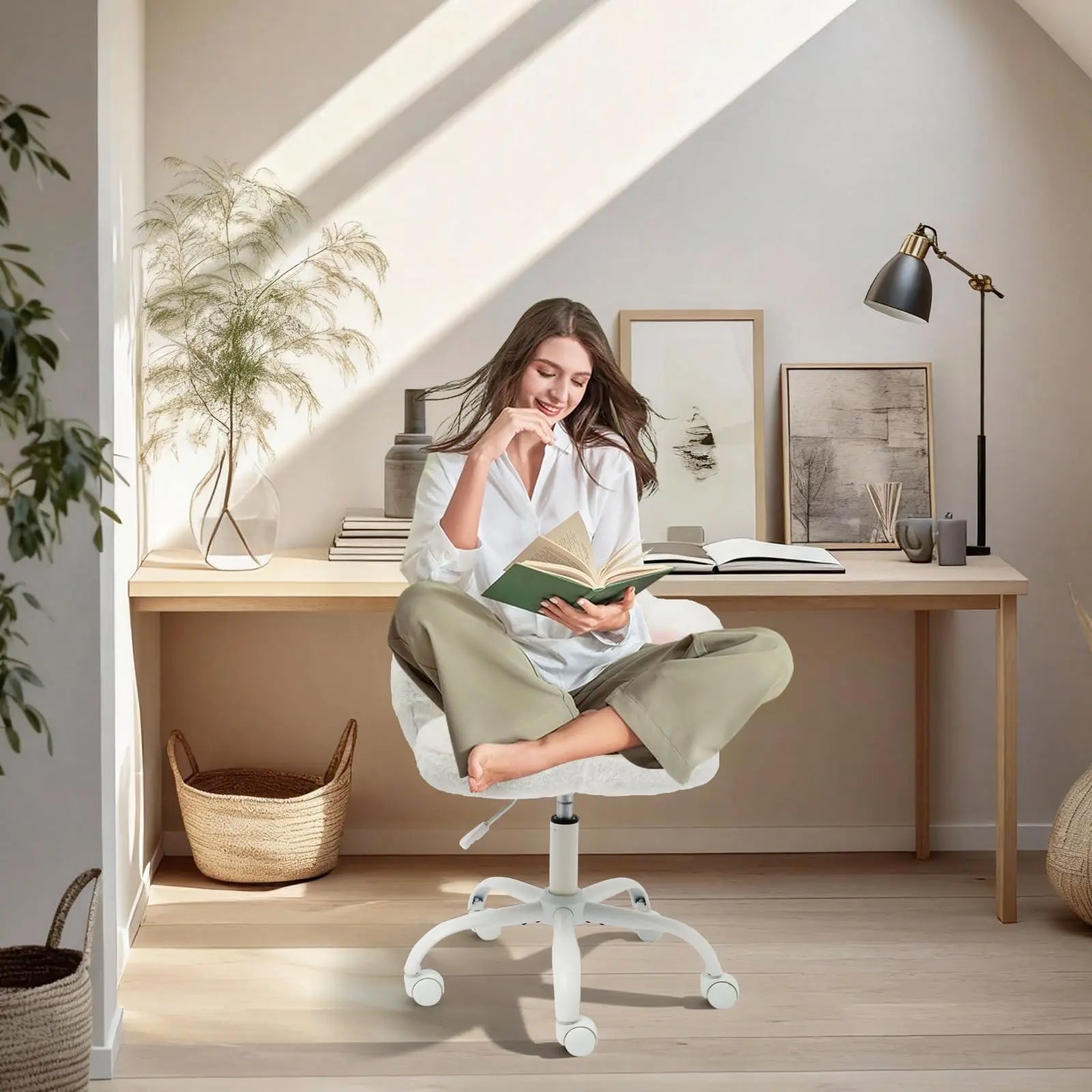 - Smooth 360-degree swivel on a sturdy metal base with five silent casters gives you freedom to glide, and a gas-lift quickly adjusts from 20.28" to 23.82" for your perfect fit.