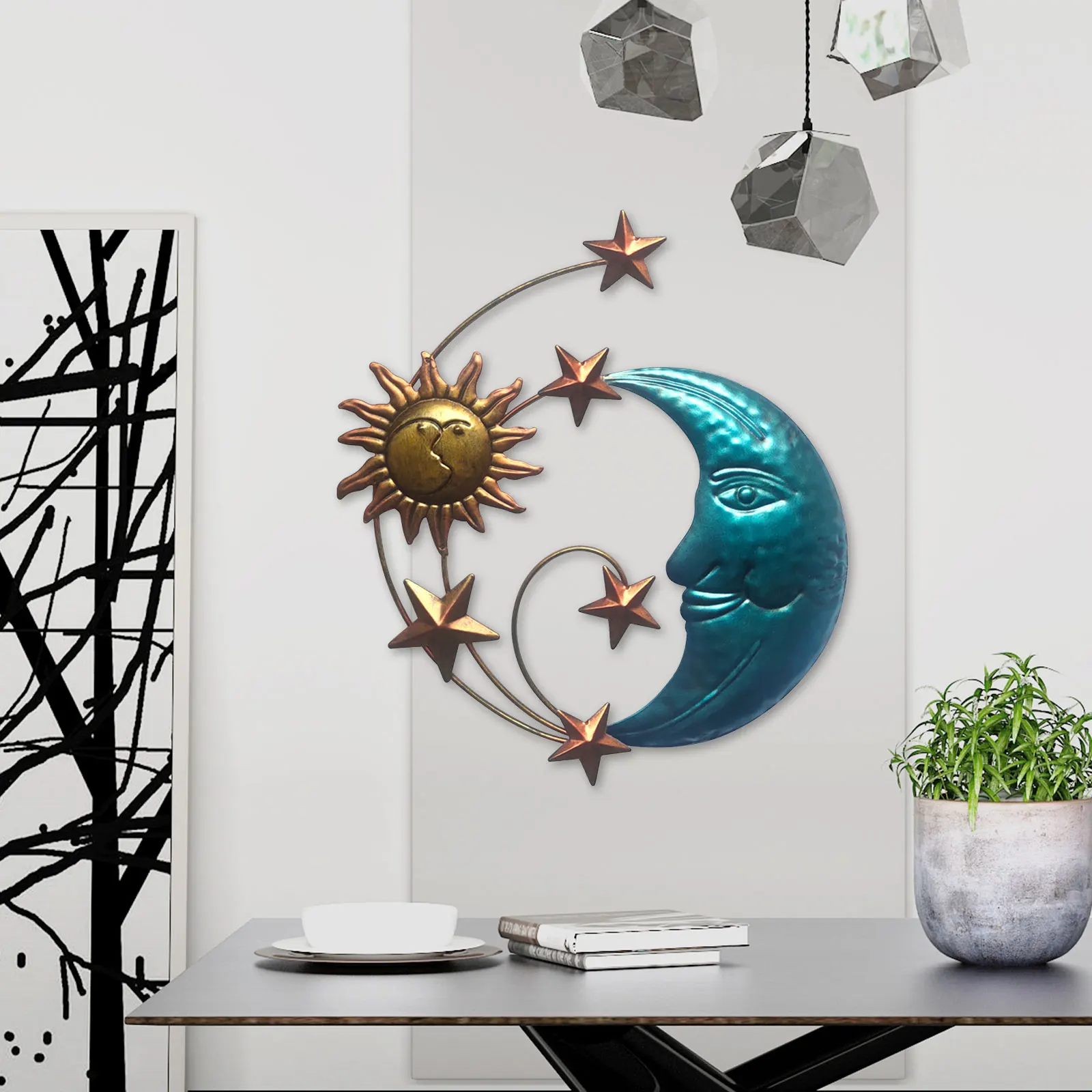 Handcrafted Ornamental Sun Moonphase Star Face Weatherresistant Metal Wall Decorative